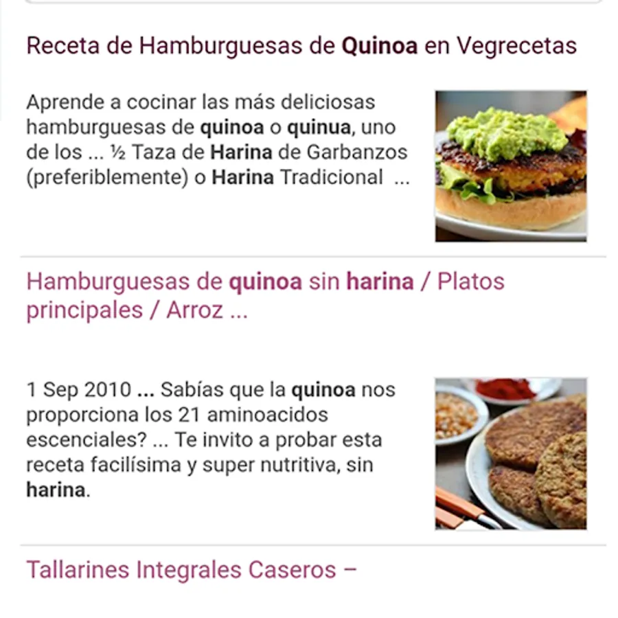 Vegan recipe finder on featured websites. Search by keywords, for example quinoa, lentils, rice, etc.