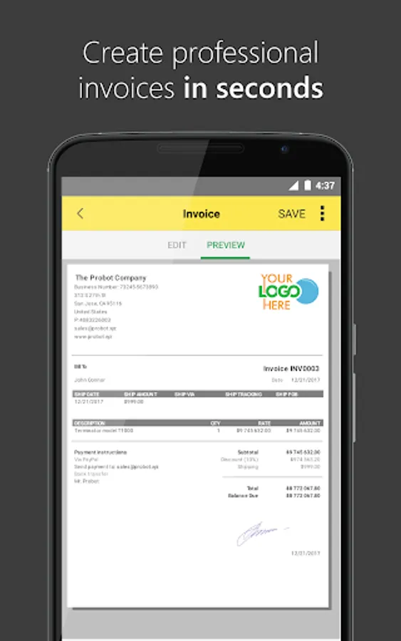 ★ Customize invoices with your logo, add a signature, images, notes and more.