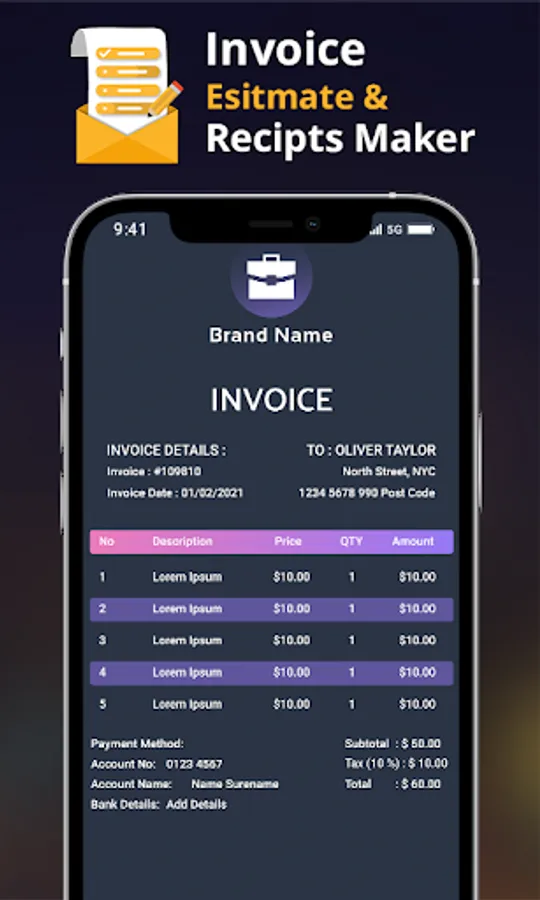 Looking for such invoice maker app with incredible invoice design and invoice format to help you in invoice generator organize your business invoices.