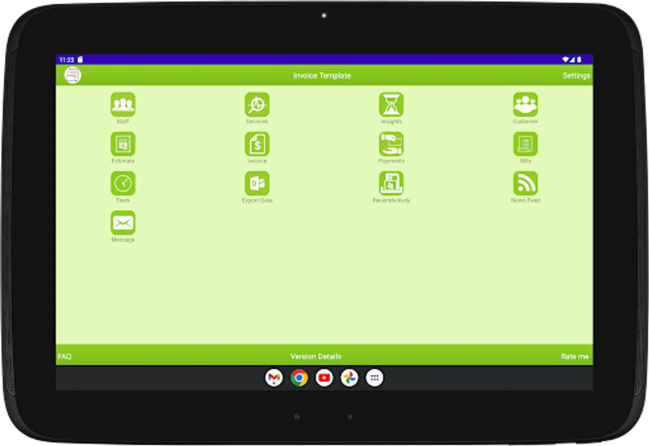 This app allows businesses to create an invoice in various file formats. It has various free Invoice templates like Invoice template in word file format, blank invoice template format, easily usable excel file format invoice template, simple invoice template in pdf file format, and downloadable invoice template in excel file format.