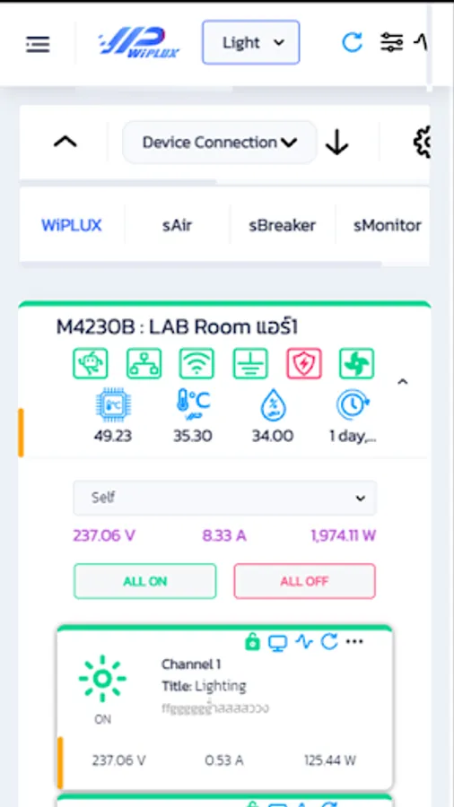 Wi-Dashboard : Monitoring the current, voltage, power, energy consumption, and environment status