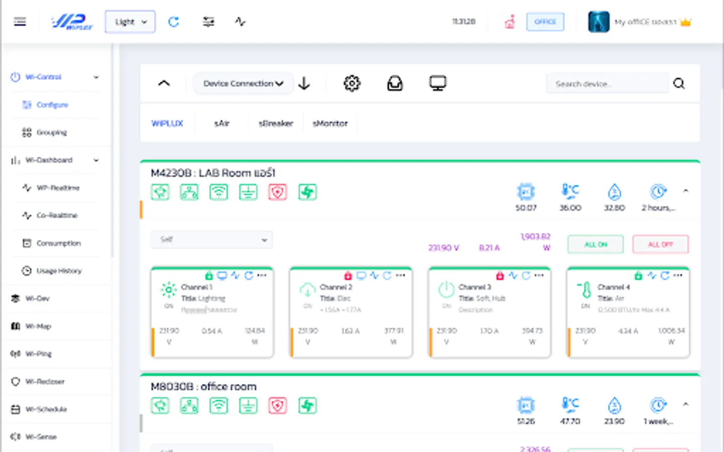 Wi-Control/Configure : Switch ON/OFF individual channel via the Web App in realtime.