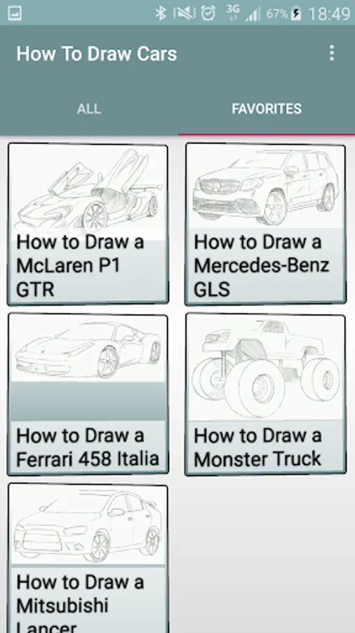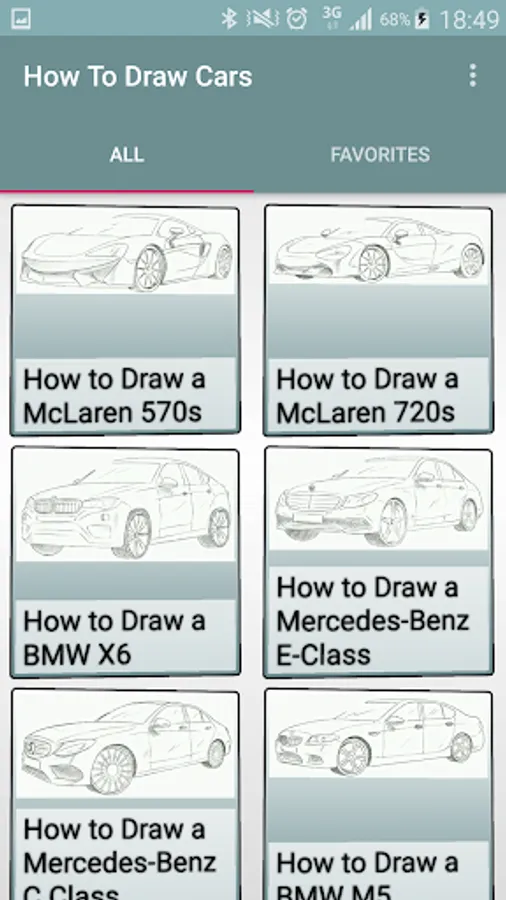 Learn how to draw cars and improve your skill drawing cars in no time with the help of our simple application. Whether you're an art teacher, art student, or just a hobbyist artist it does not matter you will find the step by step education drawing cars that will give you the ability to bring those images in your mind into paper reality.