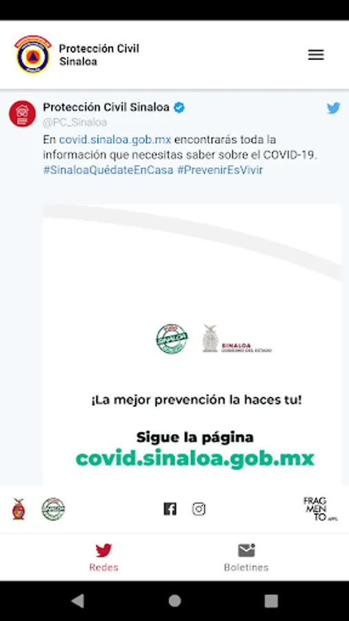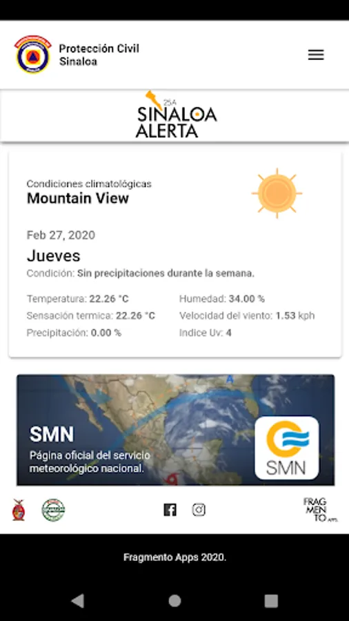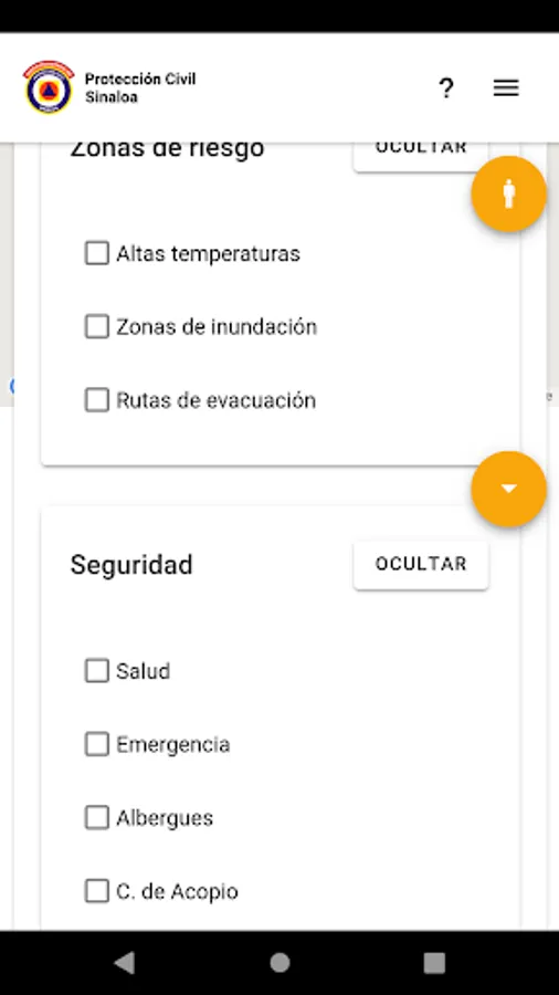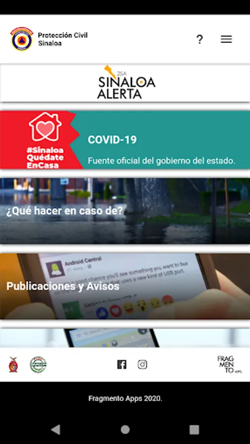 Protección Civil Sinaloa in collaboration with Fragmento developing ideas, we have developed an application to support citizens in case of emergencies. With it you can see: