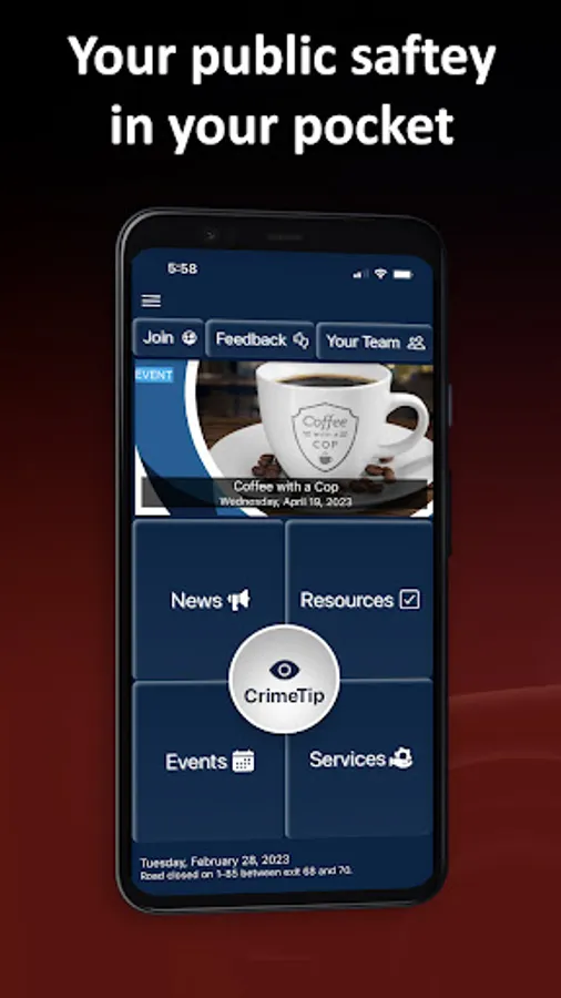 CityGuards empowers you to become involved with your community safety efforts and interact with the LOCAL POLICE department. Receive essential information and provide feedback, report an anonymous crime tip, hear the latest from your public-safety officials, get quick access to vital services, volunteer, never miss an event, and get alerts in real-time! It’s the easiest way to contact your local Police.
