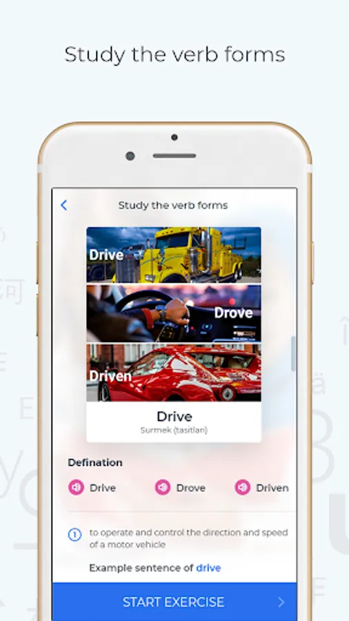 What makes Mentora Method unique? First, we build your English vocabulary on verb chunks by teaching 1500 English verbs with their collocations in 25 thematic topics and enrich your lexical powers with 800 adjectives, then link your verbs with comprehensive English grammar units and then we let you practice 1200 daily conversational phrases and expressions in 94 lessons, Also, we bring the alphabetical, frequency and rhyming lists of 1400 verbs and irregular verbs and their usages in your phone.