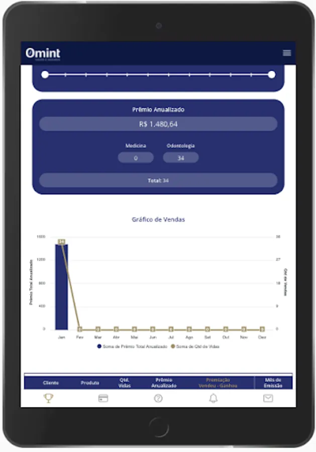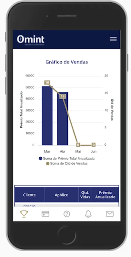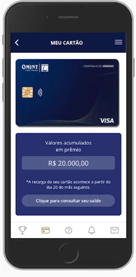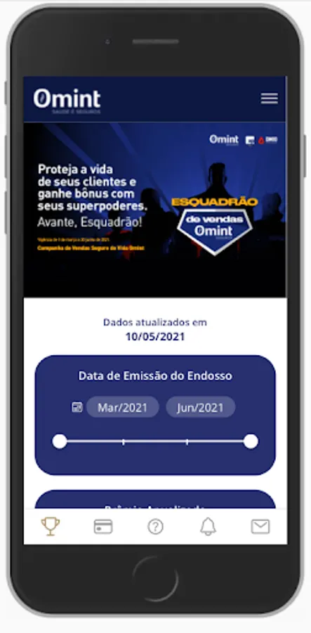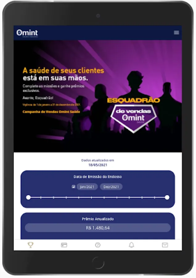 In the Omint Sales Campaign app, Omint Insurance Promoters and Brokers can track their sales, awards and goals with monthly updates, in addition to receiving notifications of news about the campaigns and tracking their premium card!