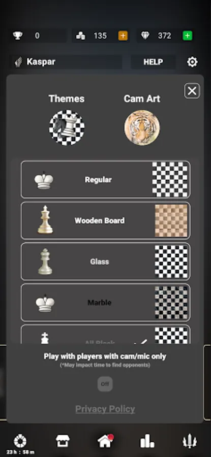 ❇️ Customize your chess board with cool themes like glass or marble