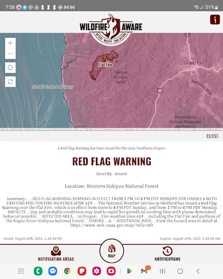 Anyone who has lived through a fire knows that Fire Weather is just as important as fire information. Wildfire Aware provides you National Weather Service (NWS) Alerts related to Wildfires as soon as they are issued. From Fire Weather Watches and Red Flag Warnings before a fire, to Flash Flood Warnings and Watches after a fire we keep you Wildfire Aware at all stages of a wildfire.