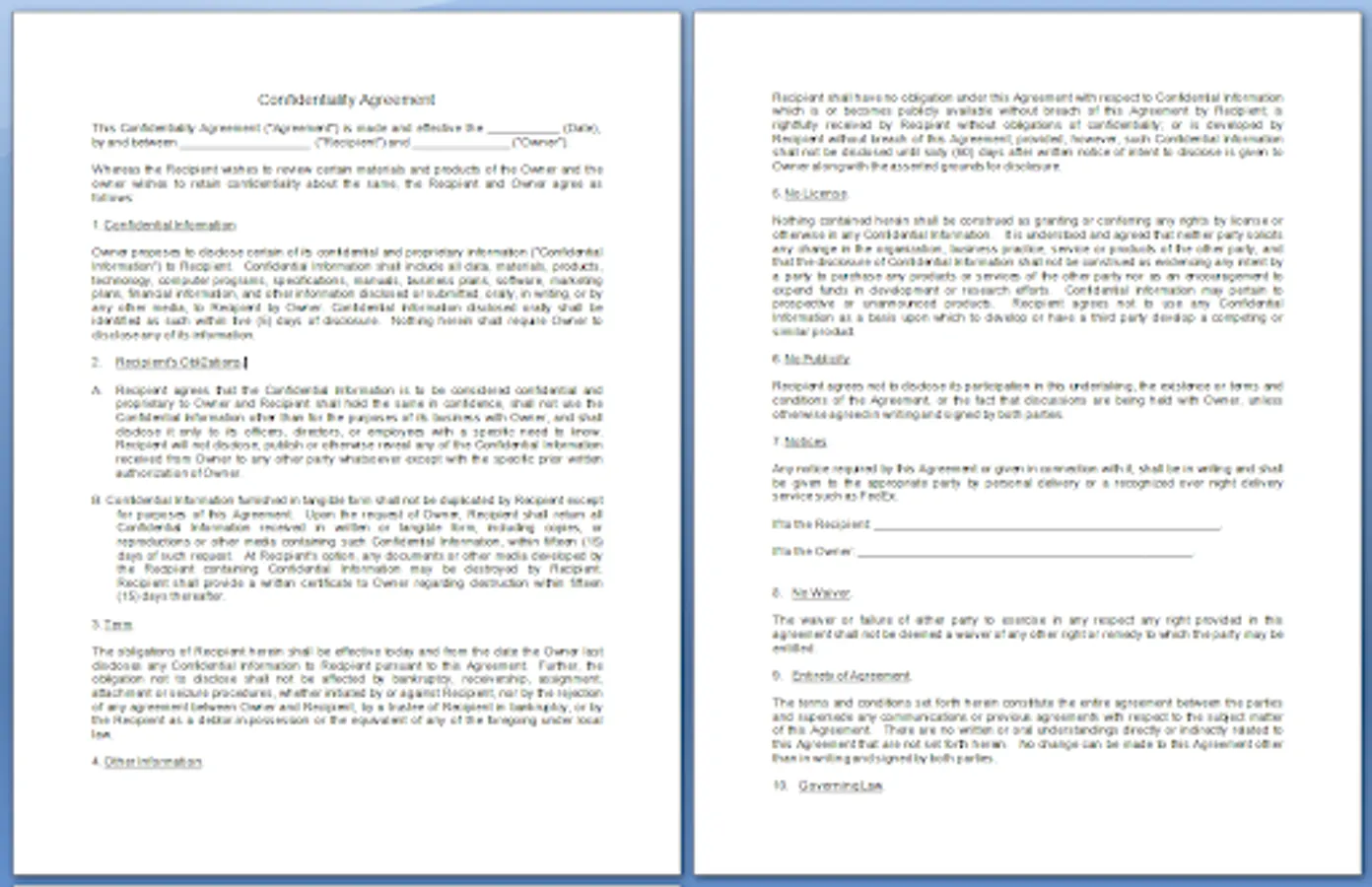 Business Agreements Templates