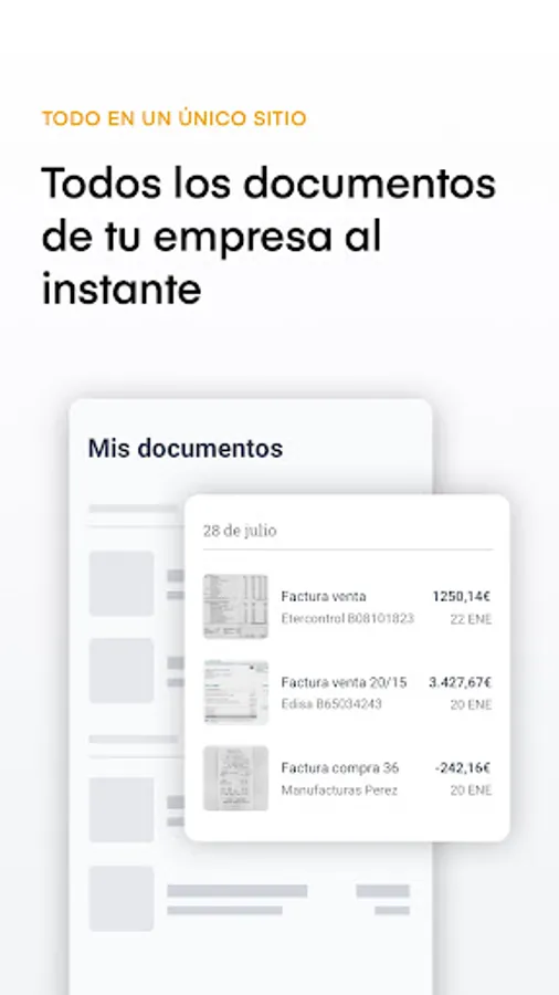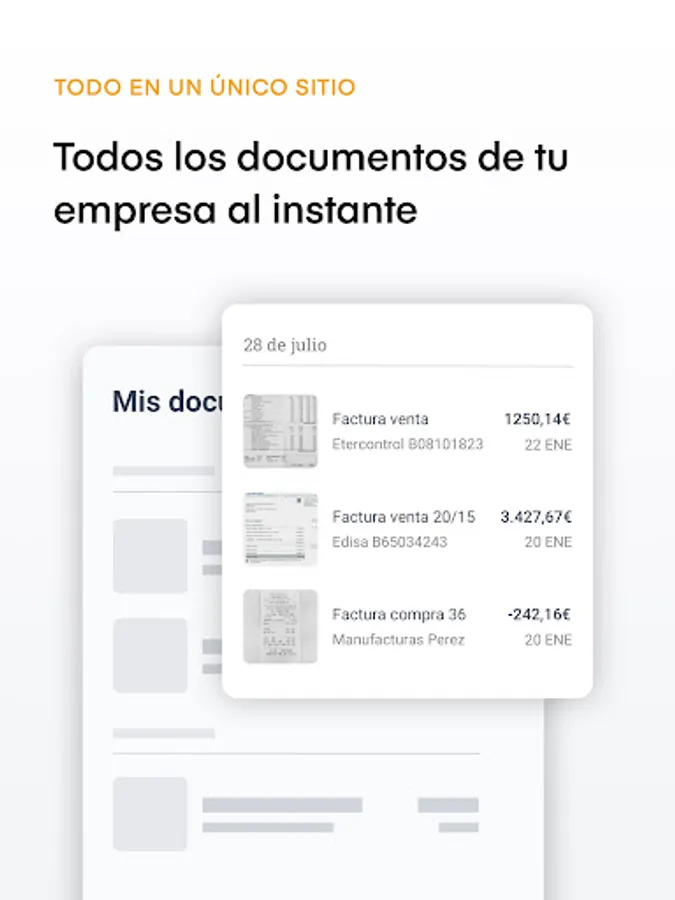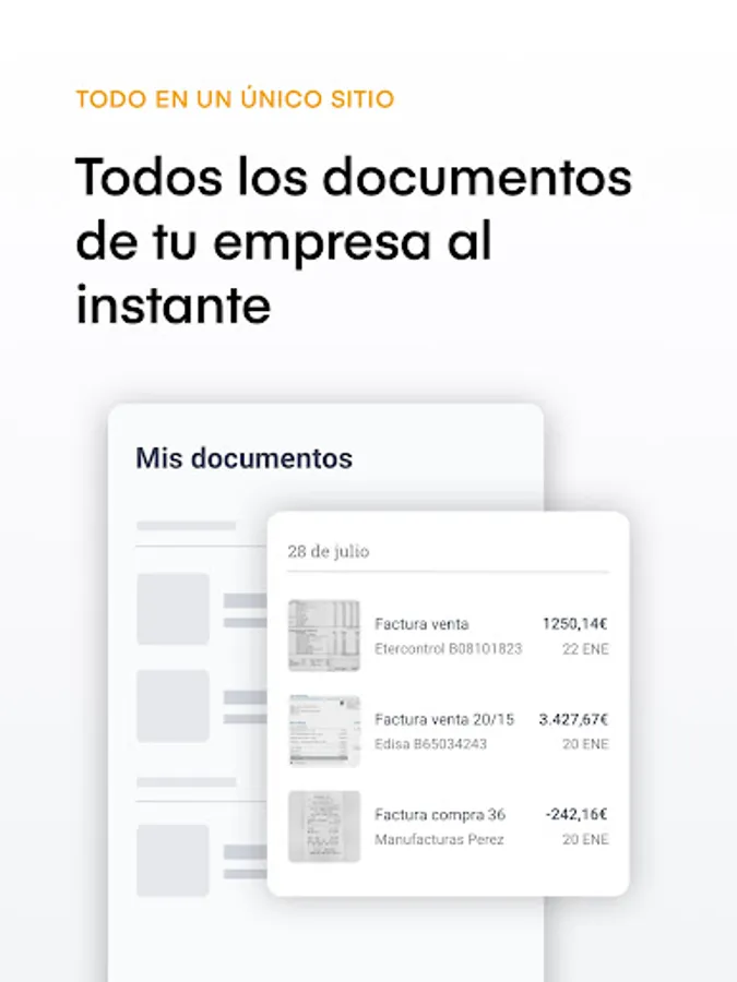 - From the app you can access all your business documentation whenever you want. From your sales invoices, your purchases, your tickets or the presentation receipts for your tax forms.