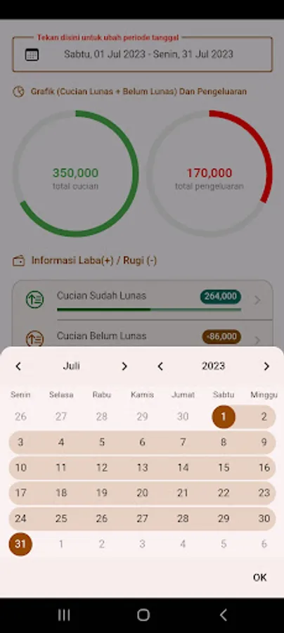 7. View profit and loss information by date period