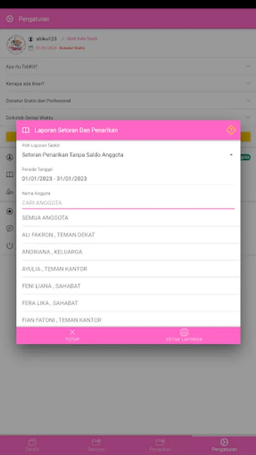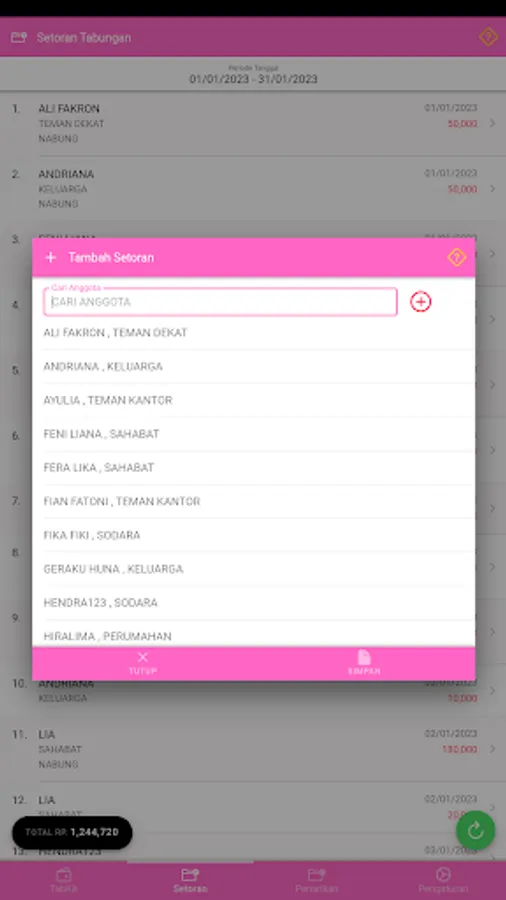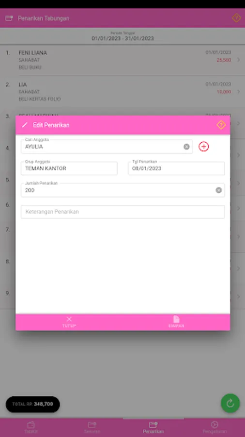 All calculations of savings balances for all groups and groups are automatic by the system, so there's no need to use a manual calculator anymore...