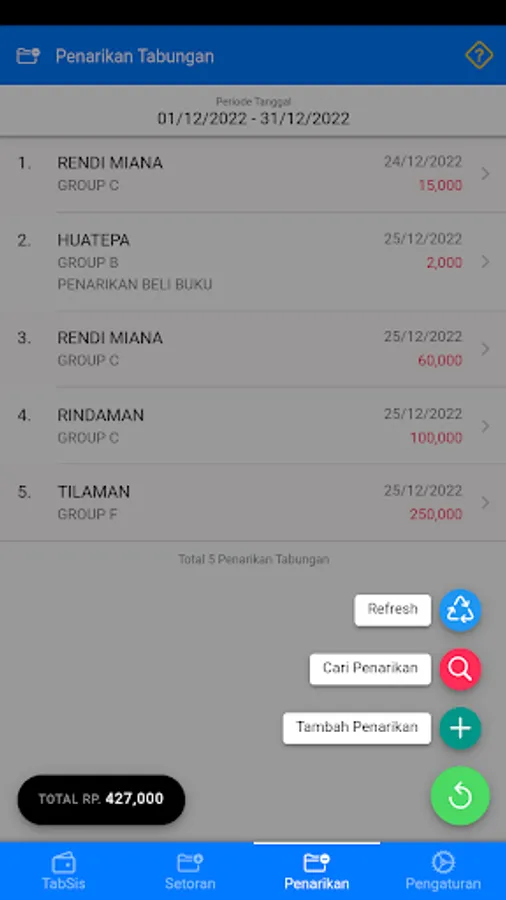3. Withdrawal menu: to monitor student savings withdrawal data