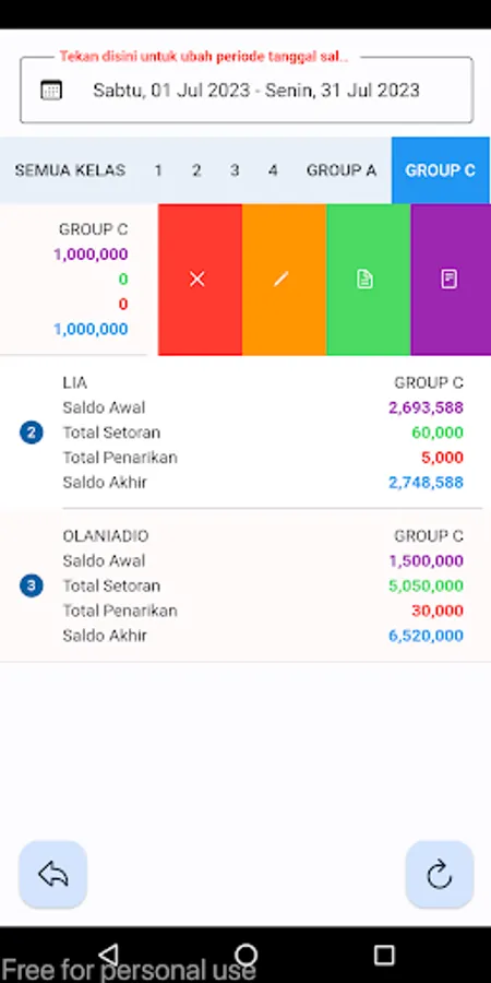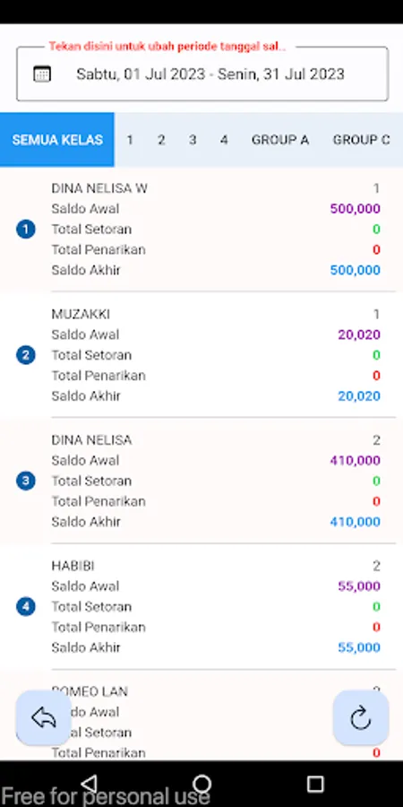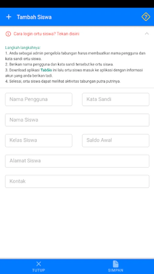 1. Home Menu: to monitor student savings in general which includes initial balances, deposits, withdrawals, and ending balances.