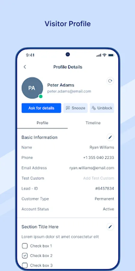 • Ask for Visitor Details: Ask visitors for contact details and other information during a live chat session.