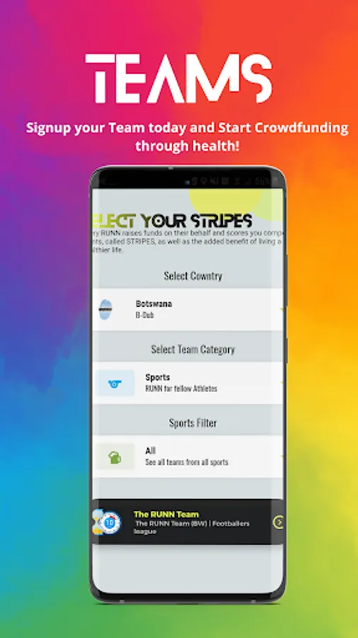 RUNN is a supporter driven Fan Support application that promotes healthy living. By simply turning on the timer and taking a jog/sprint... you automatically gain points for whichever team you support!