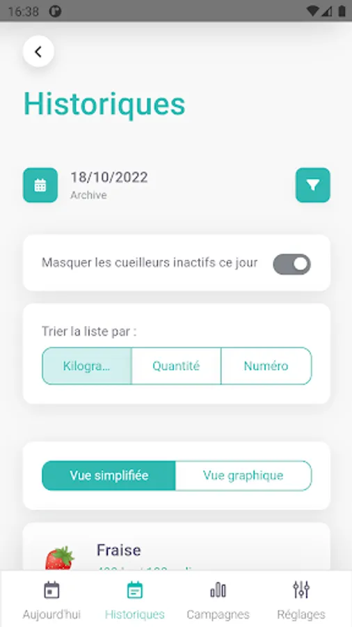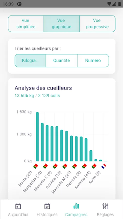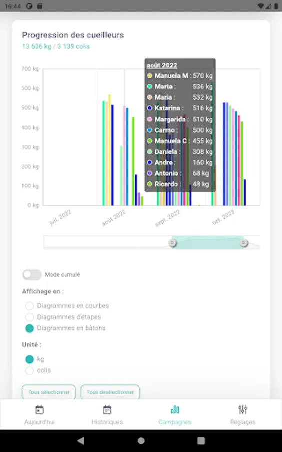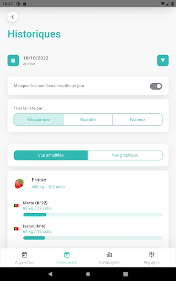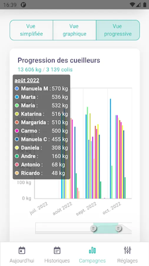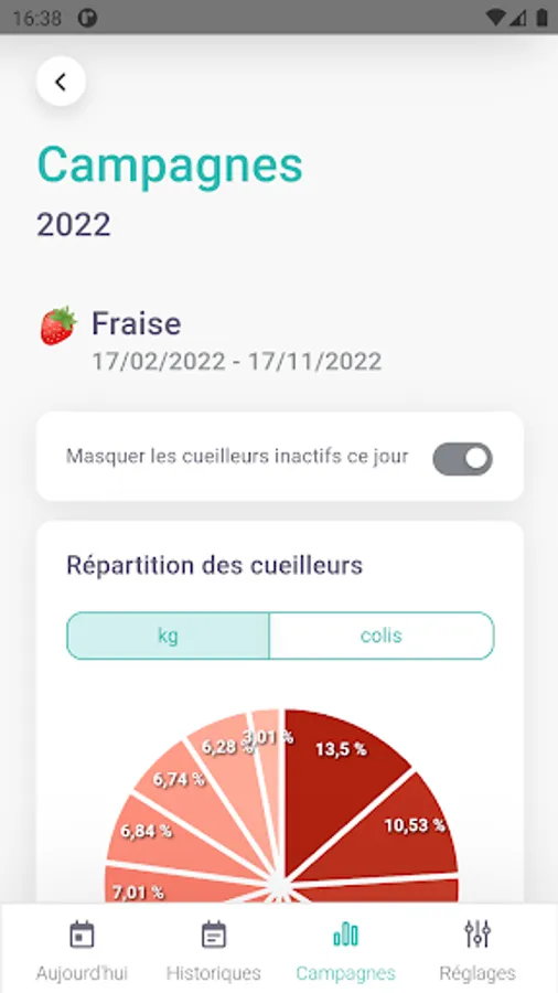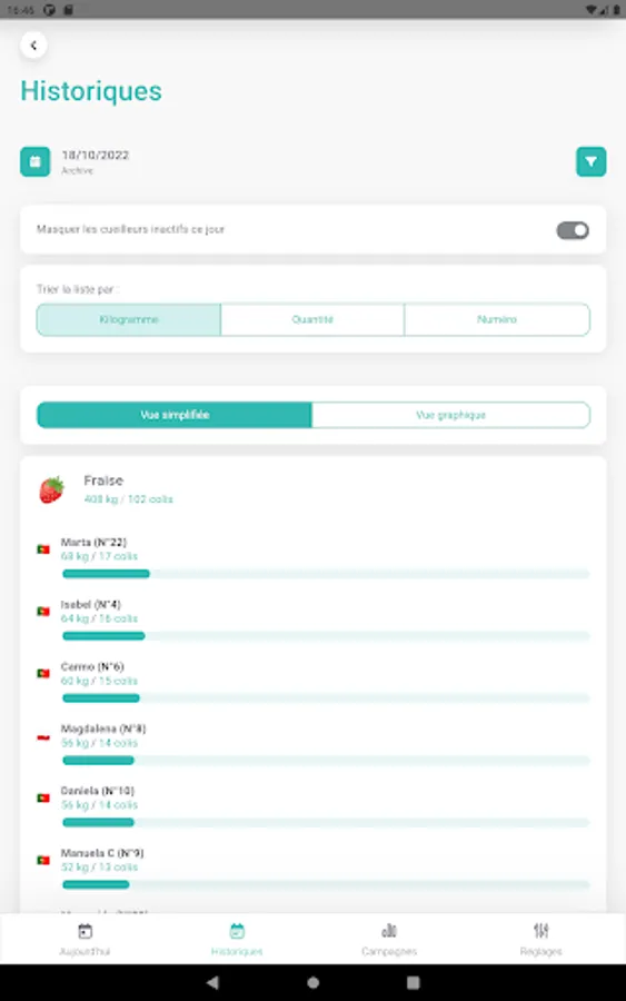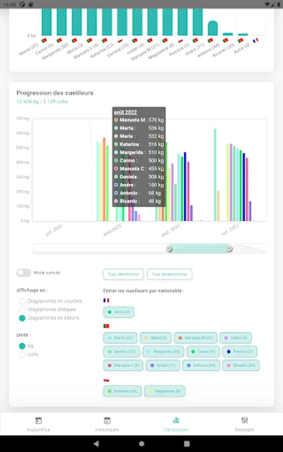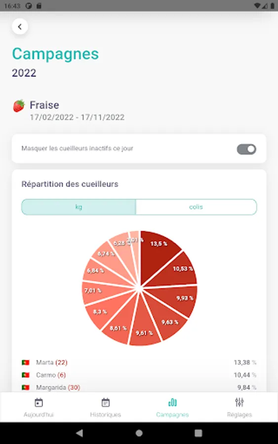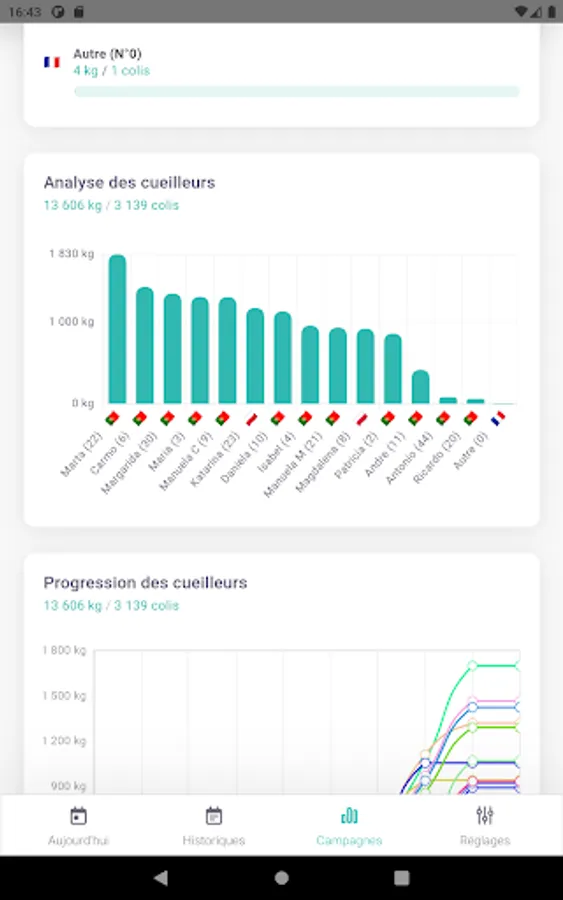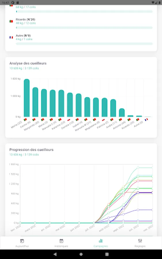 Our app also offers you a campaign functionality, which allows you to analyze in detail the picking fluctuations of each employee and each season. This helps you understand the strengths and weaknesses of each member of your team, and make informed decisions to improve their performance.