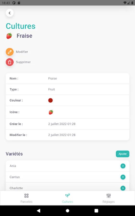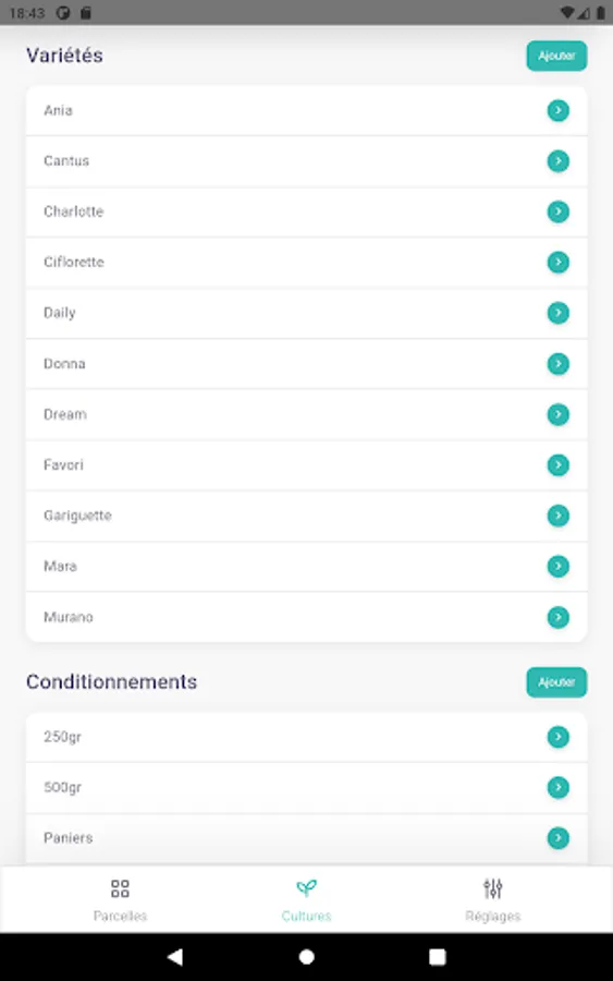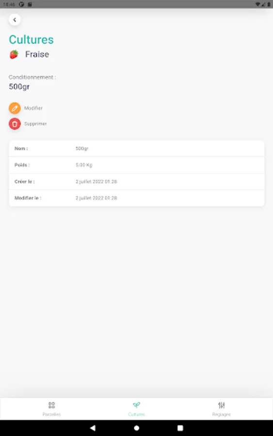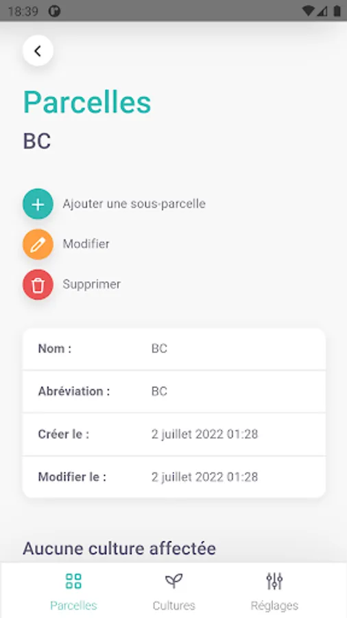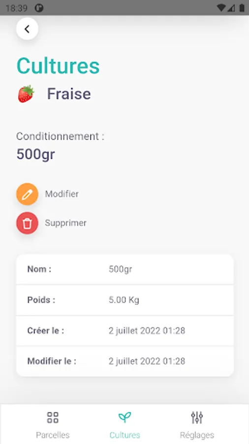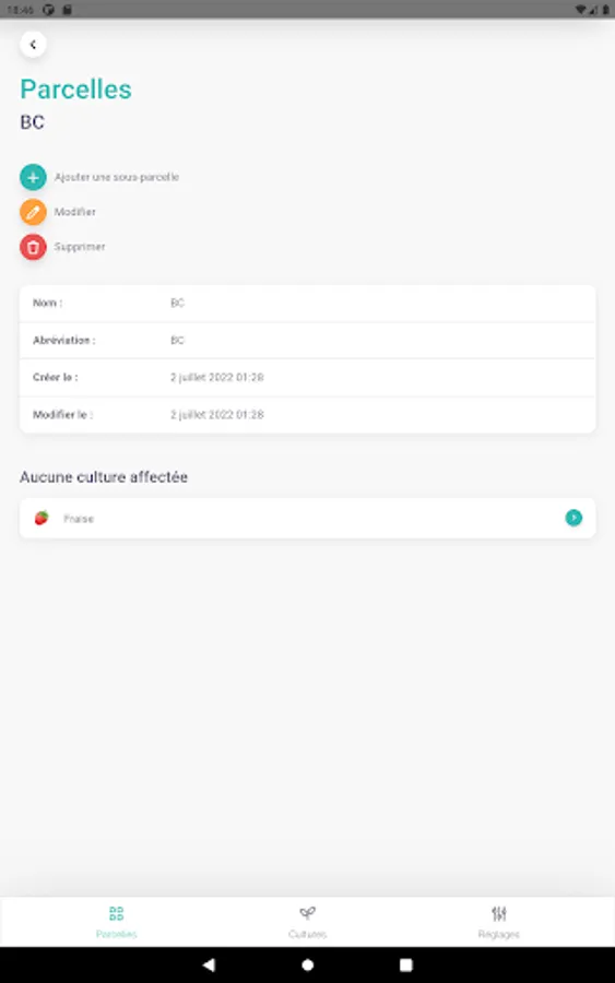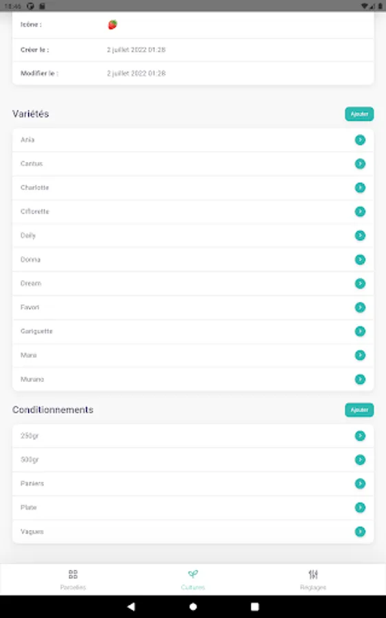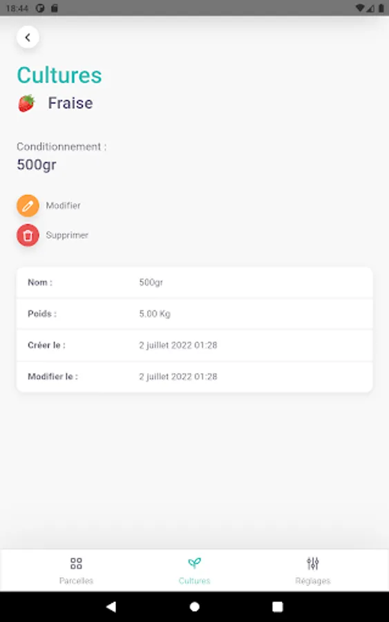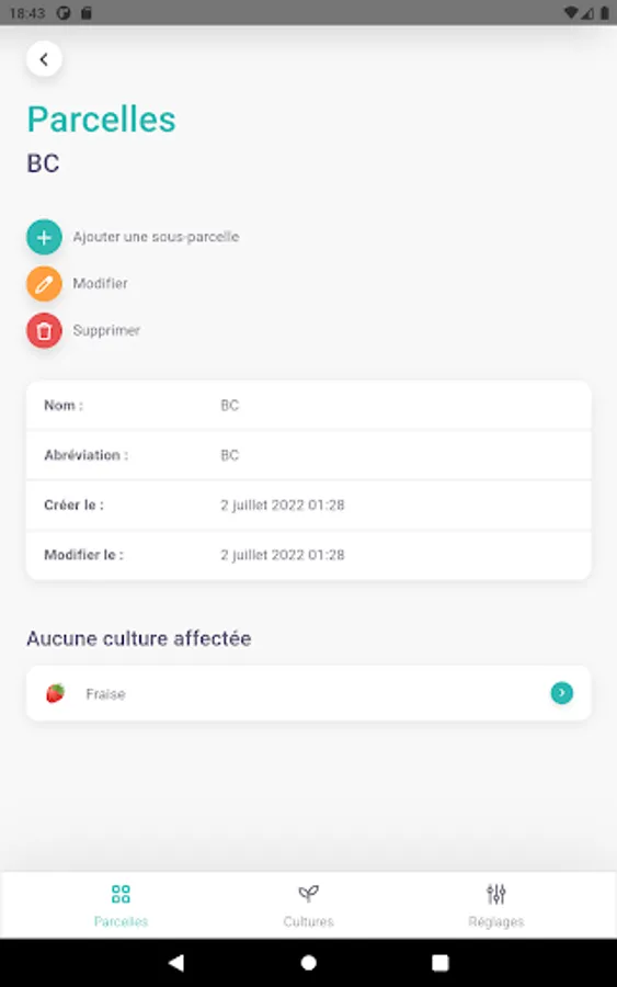 Our Plot app gives you the simplicity and flexibility you need to efficiently manage the plots and crops on your farm. In just a few clicks, you can create and manage parcel and cultural information, define the varieties of your crops as well as the associated sizes and packaging.