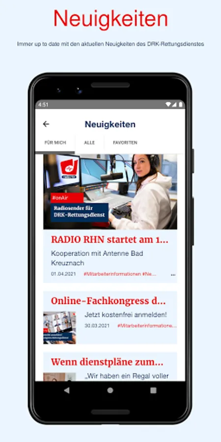 With the new DRK-Retter4U app of the DRK-Rettungsdienst Rheinhessen-Nahe you have all information from the world of the emergency service in one place. Stay up to date with news from various categories (training, jobs, virtual reality, employee information, events and much more) and don't miss any news.