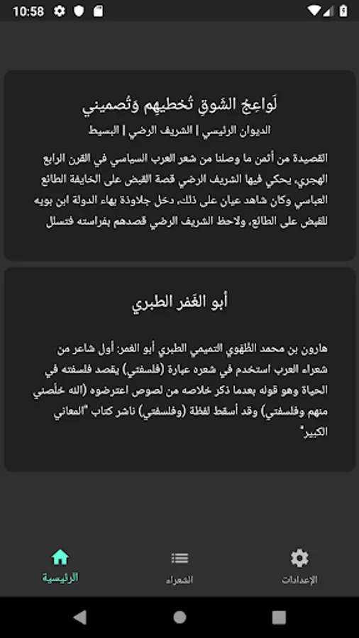 And from the Abbasid era (Al-Mutanabbi, Abu Tammam, Abu Nawas, Abu Firas Al-Hamdani)