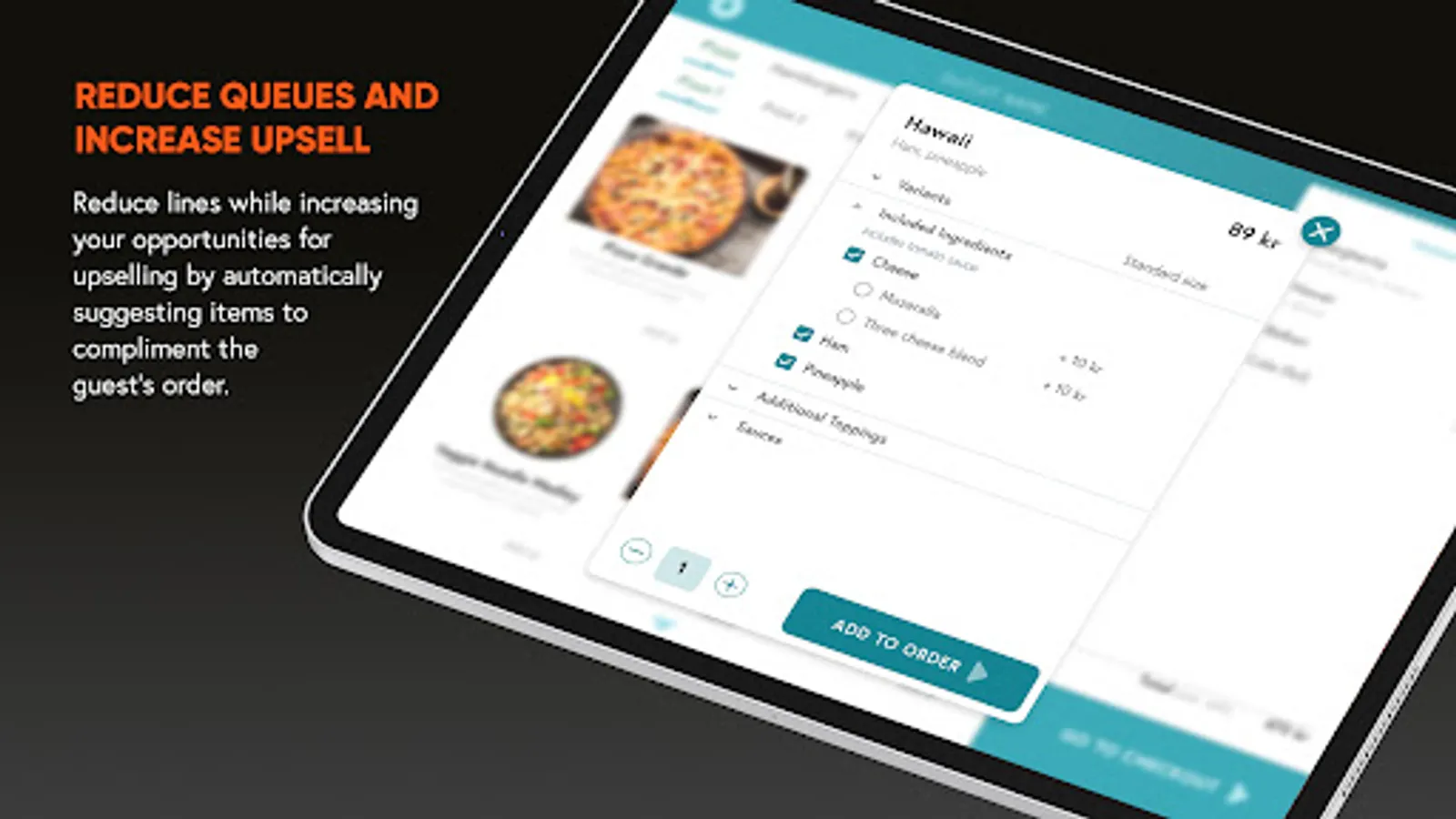 Guests can browse the complete menu at their leisure, with products presented with tantalizing pictures, ingredients and even additional upsell items to compliment their order.