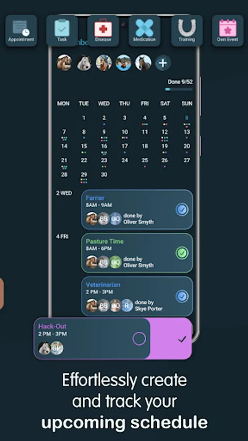 Be reminded of important appointments, such as vet or farrier visits