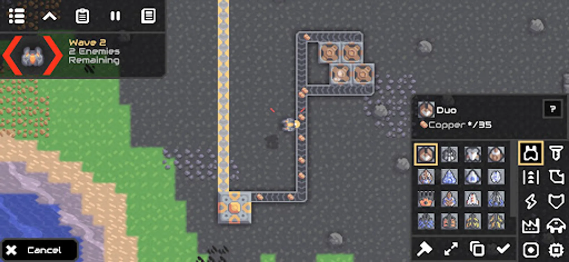 Mindustry is a factory-building game with tower defense and RTS elements. Create elaborate supply chains to feed ammo into your turrets, produce materials to use for building, and construct units. Command units to capture enemy bases, and expand your production. Defend your core from waves of enemies.