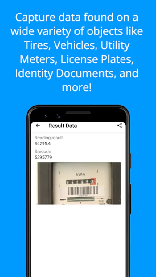 * Capture data from analog characters and barcodes found on a wide variety of objects like Tires, Vehicles, Utility Meters, License Plates, Identity Documents, and more!