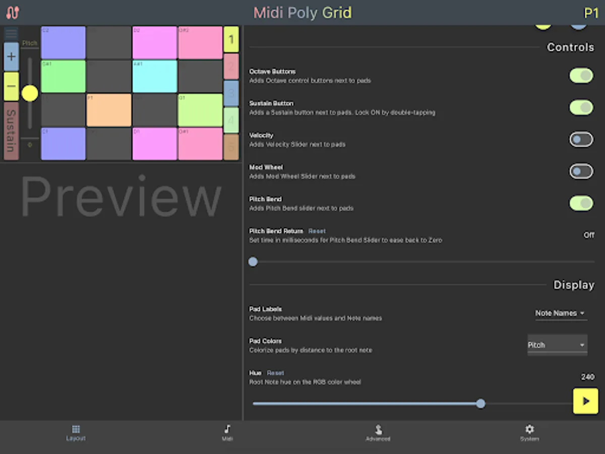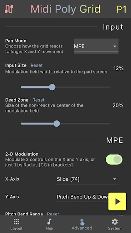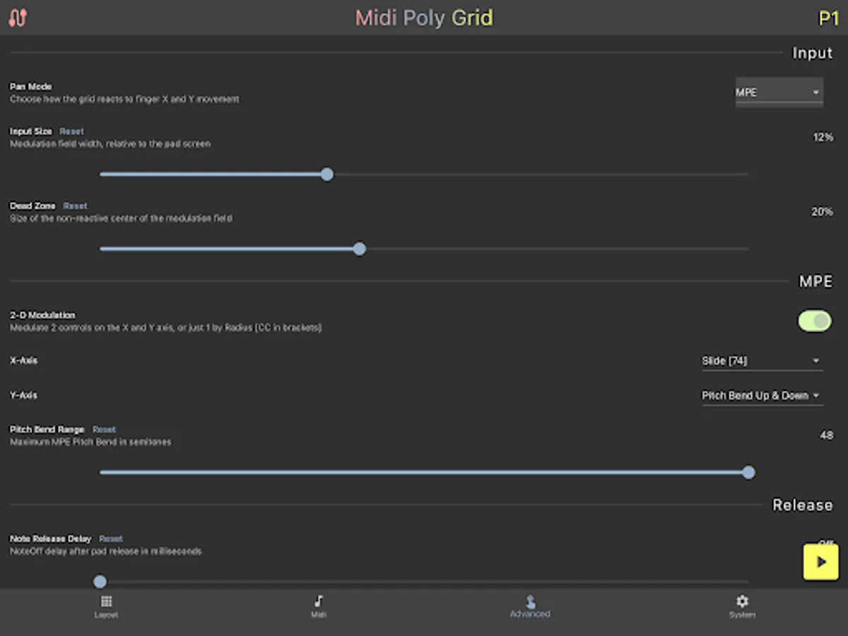 This app aims to be an easy-to-use pad input device featuring a variety of layouts, intuitive playability and modern modulation options, such as MPE and Polyphonic Aftertouch. It was designed for people that prefer pads to pianos! The focus of this app is not to be a jack-of-all-trades Midi swiss army knife, but instead to be a great at one thing: Intuitive and versatile pad controls.