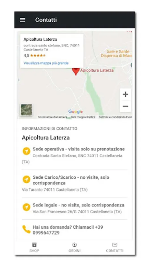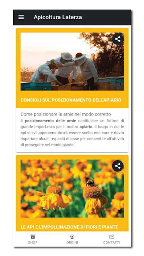 With the Apicoltura Laterza app you will always be updated on the latest news regarding the beekeeping sector. With this application you can conveniently check the status of any orders placed on the official website of Apicoltura Laterza. If you want to have direct contact with us download the app.