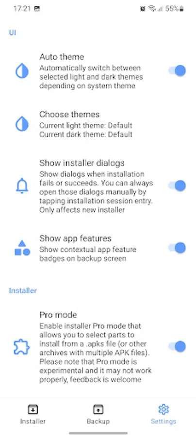 The backup function allows you to backup APK files and APKs easily and quickly.