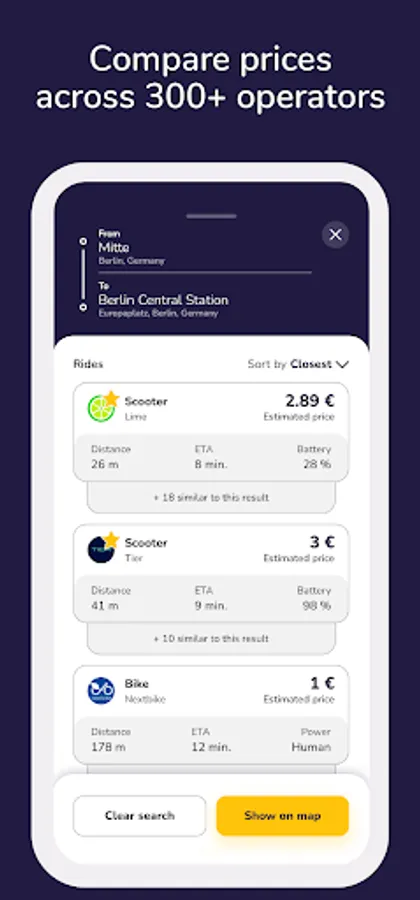 Avoid the hassle of opening multiple apps. Just open Cogo, find the closest ride, compare prices, and you’ll be redirected to the shared mobility operator of your choice—getting you moving in seconds!