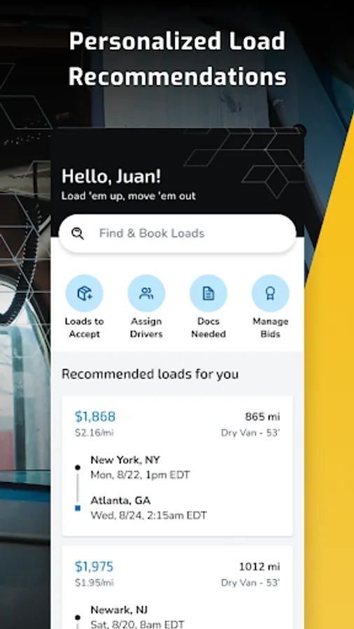Dispatchers and Owner-Operators can book, bid, manage, and track the progress of truck loads with less hassle. Plus, our Smart Loadboard highlights loads just for you with our AI-driven recommendations.