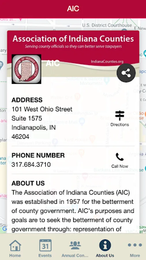 The Association of Indiana Counties (AIC) mobile application is a valuable tool for County officials and staff to better serve their communities. The AIC app has many features designed to help county officials better serve their residents, including: