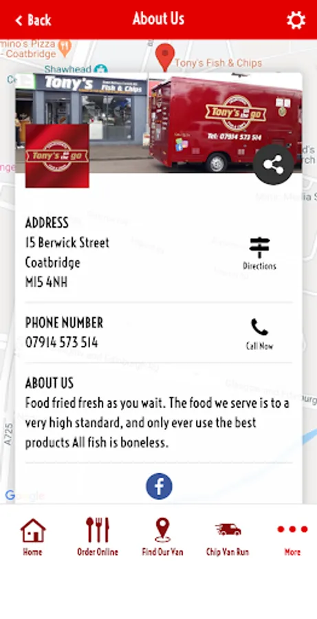 Tony's On The Go Chip Van and chip shop Coatbridge and North Lanarkshire. Award winning fish and chips.