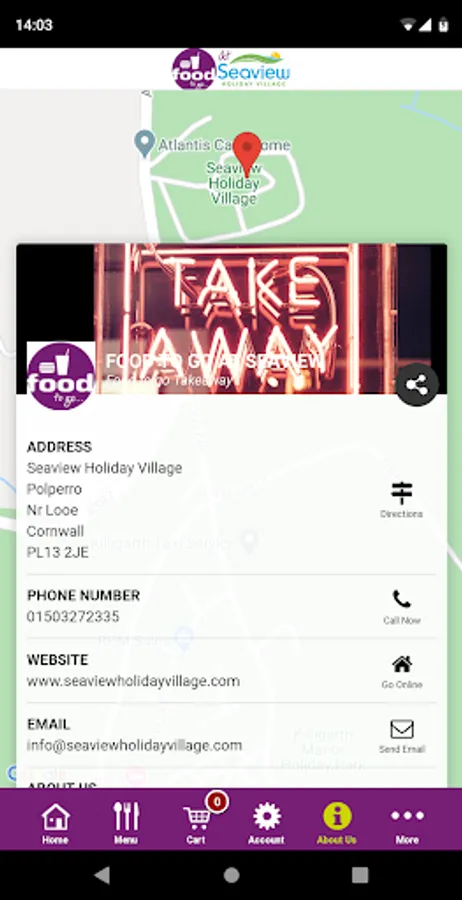Takeaway ordering app for Seaview Holiday Village in Polperro Cornwall
