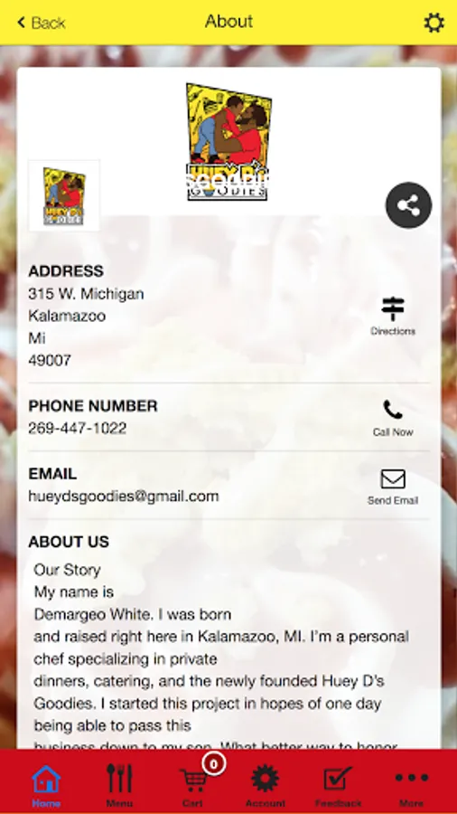 Our Story My name is Demargeo White. I was born and raised right here in Kalamazoo, MI. I’m a personal chef specializing in private dinners, catering, and the newly founded Huey D’s Goodies. I started this project in hopes of one day being able to pass this business down to my son. What better way to honor that dream than by giving it the unique, special, and precious name of my firstborn son Houston DeAndre White. Huey D’s Goodies focus is to deliver quality, delicious desserts to the happy hearts of Kalamazoo. Our promise is to stay true to our mission which is: “Curing a sweet tooth one bite at a time"