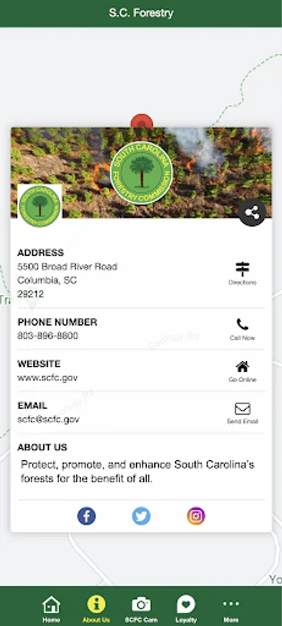 The purpose of this App is to help South Carolina Forestry Commission collaborate with its citizens to help to protect, promote, enhance, and nurture the forest lands of South Carolina. Use our app to: > View current wildfires > Burn notifications > Connect with us on social media > and more...