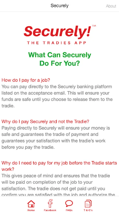 Securely is an easy-to-use app that tradies and sub-contractors could use to protect their payments with consumers. As a result, Securely! the Tradies app, now protects Tradies and their customers through a secure payment gateway portal.