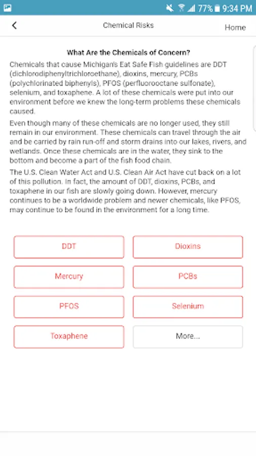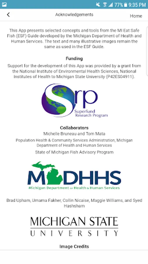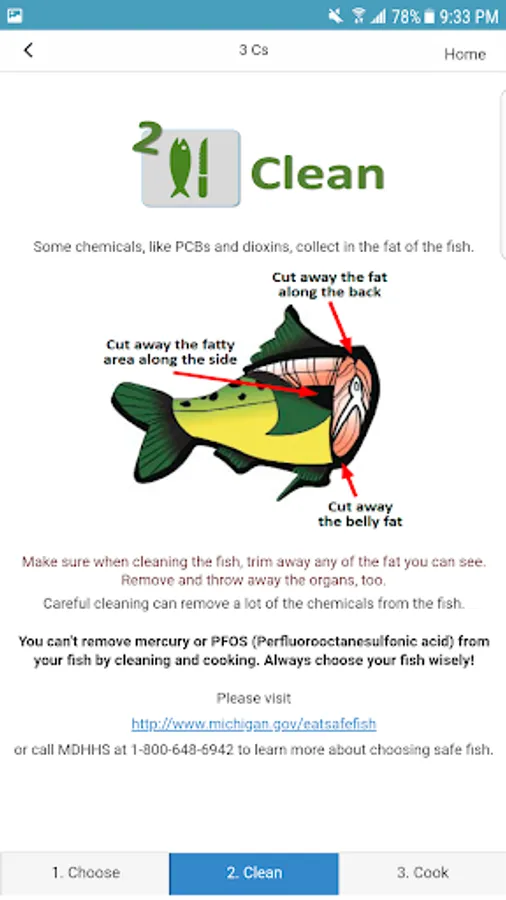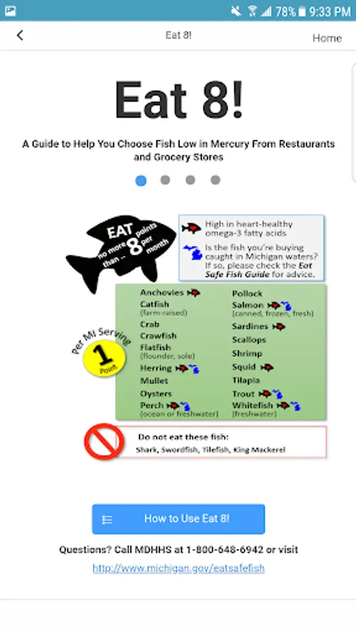 This App presents selected concepts and tools from the MI Eat Safe Fish (ESF) Guide developed by the Michigan Department of Health and Human Services. The text and many illustrative images remain the same as used in the ESF Guide.