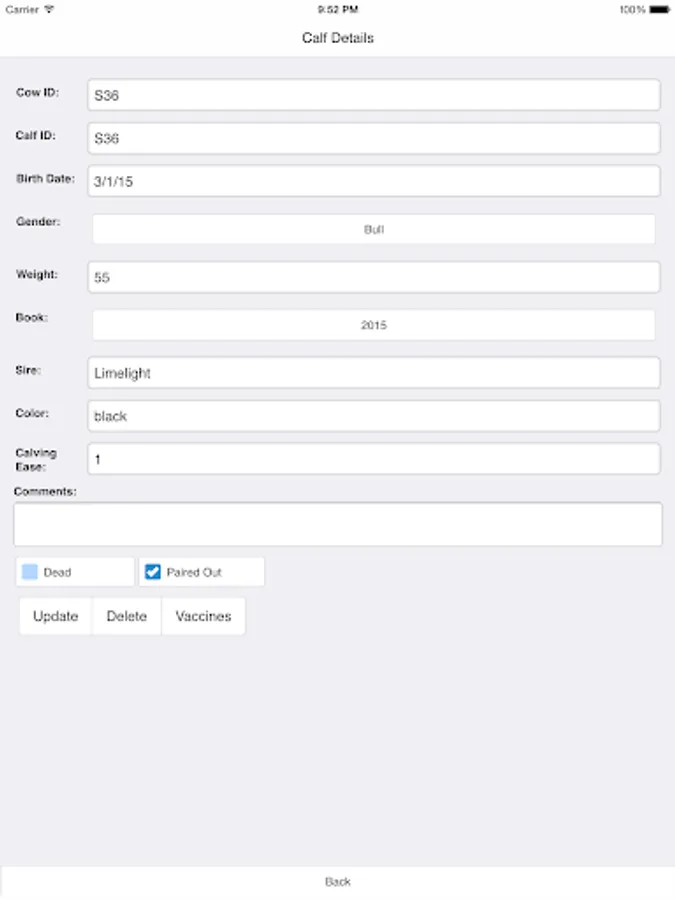 This is a quick way to keep track of calf records. We made it easy for users to access multiple books from the same app. Need to look at last years book? No problem! It won't go away unless you delete it!