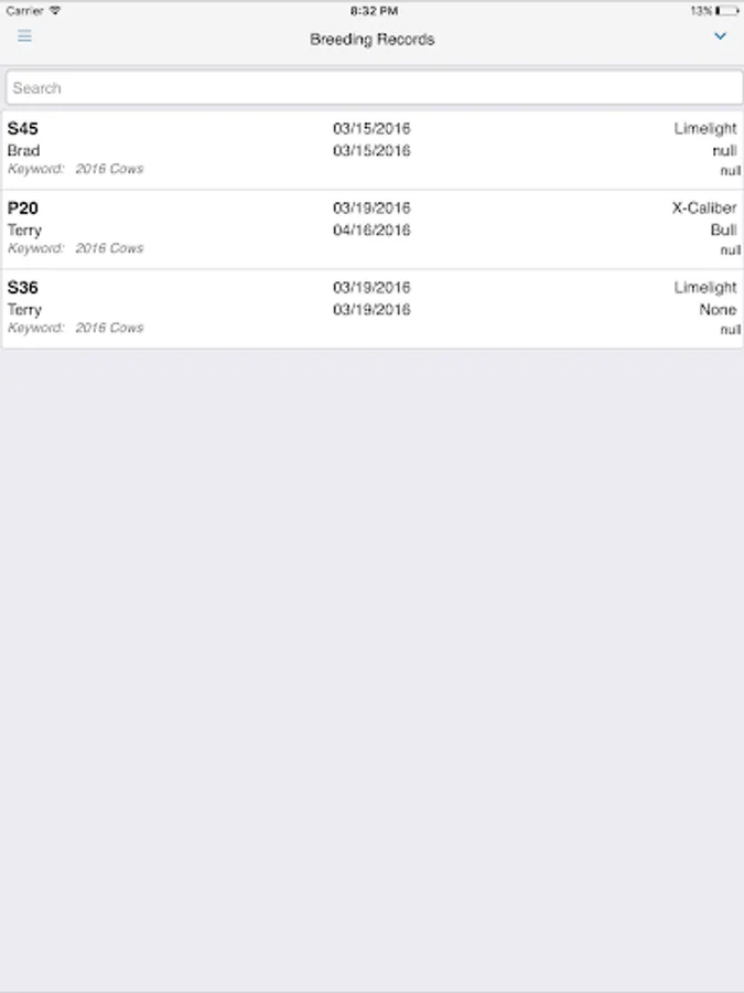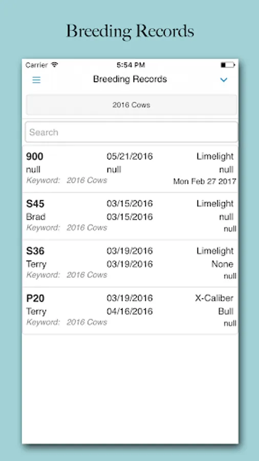 Instead of scrolling through a whole list of possibly hundreds of calves, simply search for the one you are looking for and edit it right from the search page!