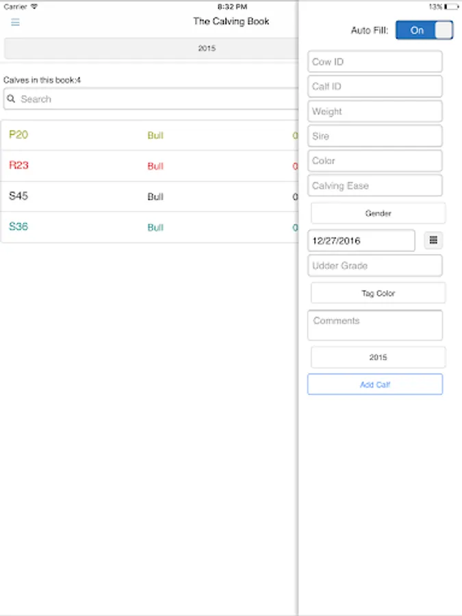 Experience the ease of keeping track of calf records with The Calving Book Plus. Add calf information such as calf id, birth weight, gender, date, and even comments about the calf. It has never been easier to do! The main functions of this app will even work offline!