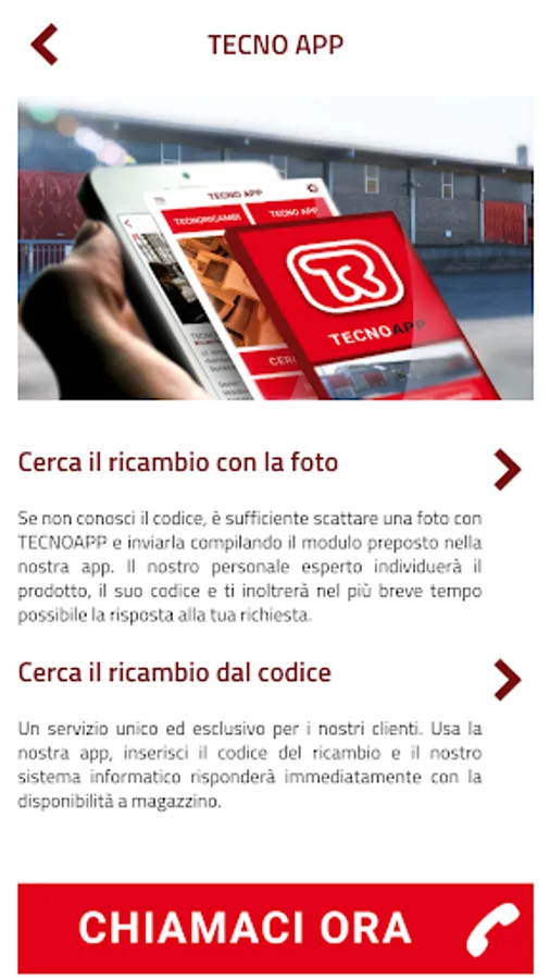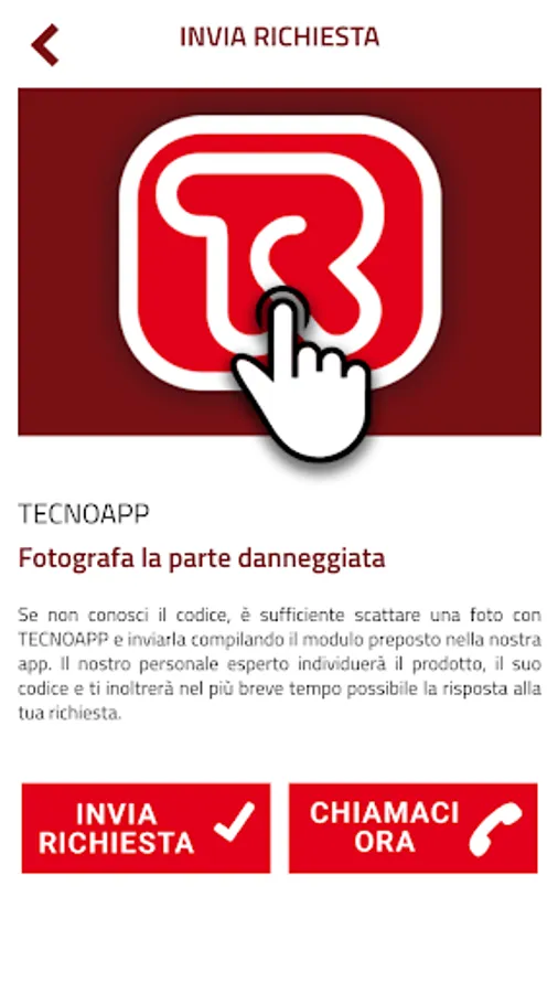 If you do not know the code, just take a picture with TECNOAPP and send it by filling out the form in our app responsible. Our experienced staff will identify the product, its code and forward it to you as soon as possible the answer to your query.