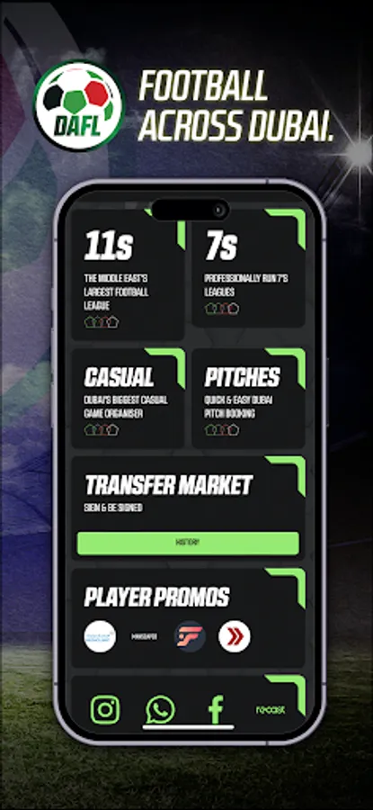 Do you want to play amateur football in Dubai? Join one of our many casual matches, check your 11 a side teams fixtures, league tables or see who's the top scorer, enter your team into our monthly 7 a side leagues, register for the transfer market to find a team, book a training pitch or take advantage of our partner offers. The Dubai Amateur Football League covers all your Dubai based footballing needs.