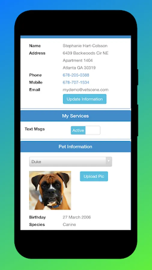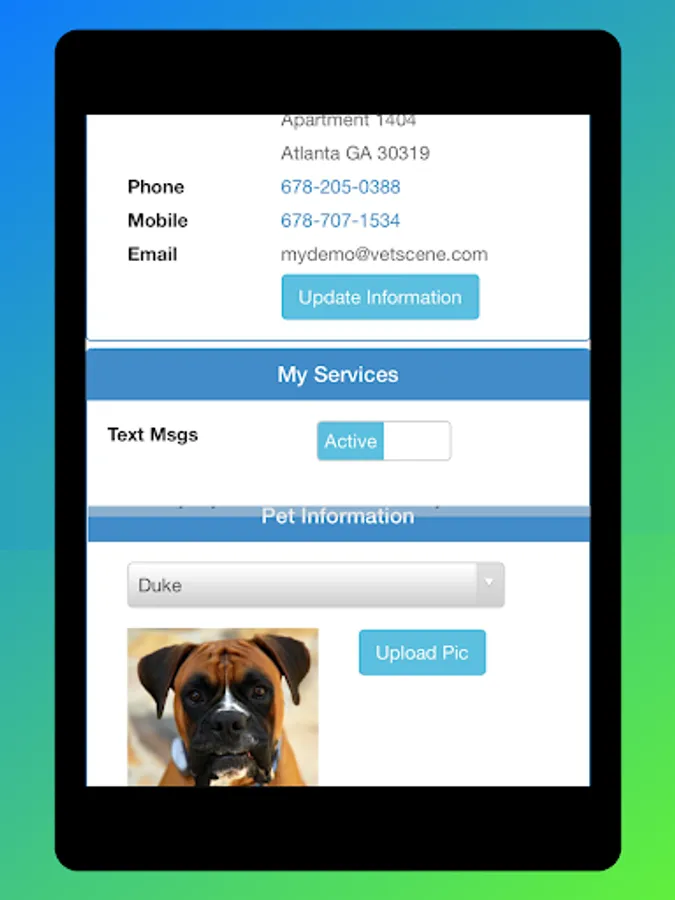 What can you do with your VetScene Patient Portal app? Manage your pets’ health schedules, view upcoming appointments, or follow up on healthcare recommendations. Receive appointment reminders, newsletters, vaccination reminders via email and/or text messages. Gain 24/7 access to your pets’ information. Request appointments, make boarding reservations, refill medications, or ask general questions. Upload your pet's best photo, contact your clinic, and subscribe to Text Messaging.