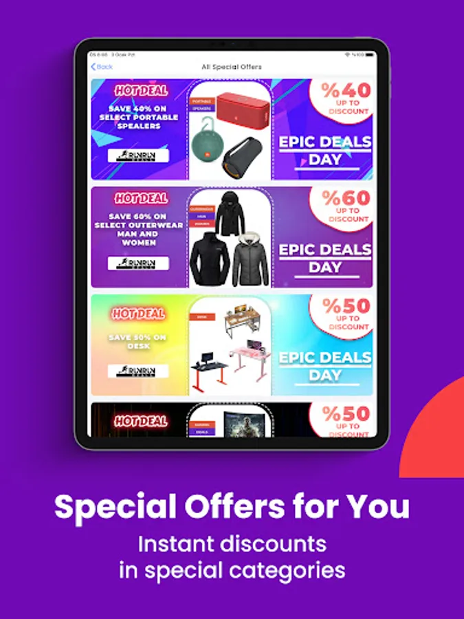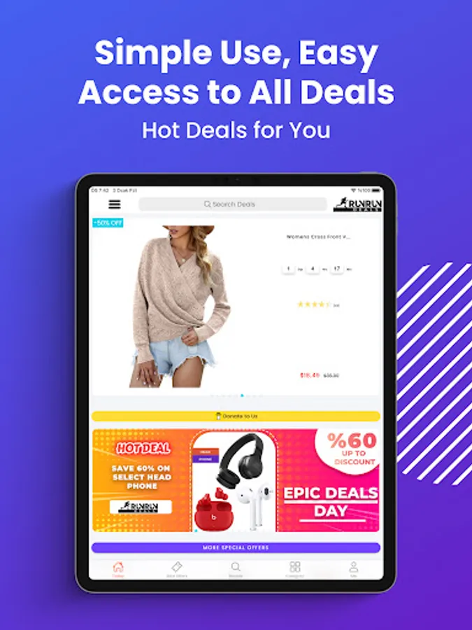 Looking for deals, discounts, and offers is easier than ever with the Run Run deals app. Our deal finder app makes it extraordinarily easy for anyone to find the best ongoing deals and shopping offers free of charge. By downloading the app, you can explore discounts/coupon codes and much more without hassle. Our deal finder app has updated coupons and offers to target different categories such as: