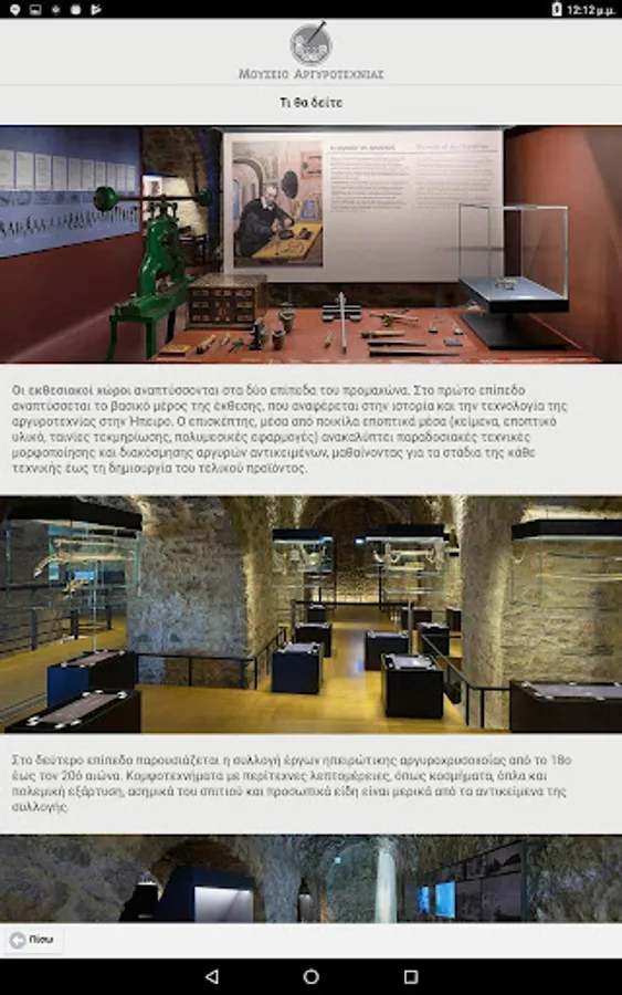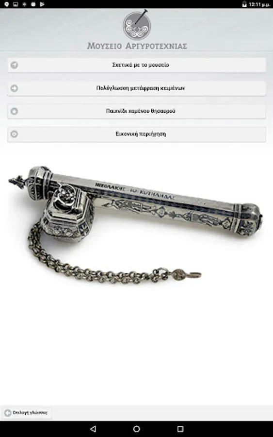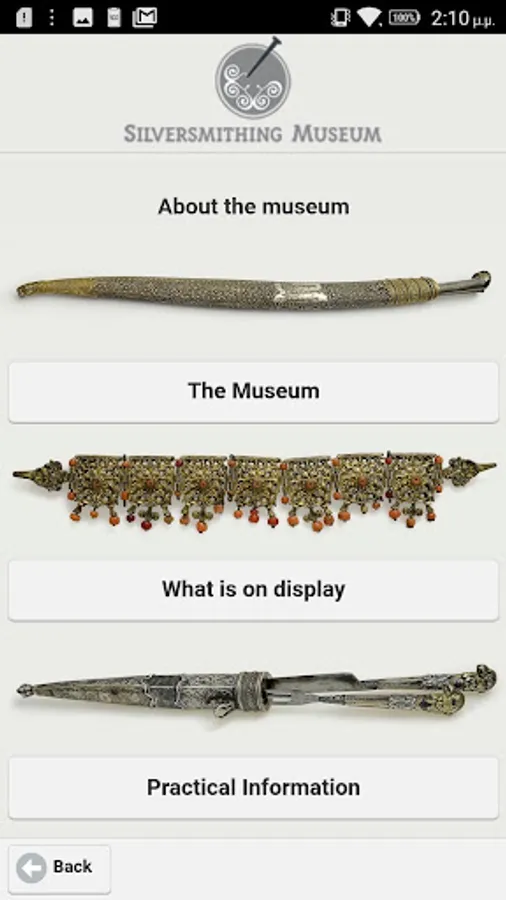 The Ioannina Silversmithing Museum App provides information on the museum and its exhibits, as well as practical information on museum access.