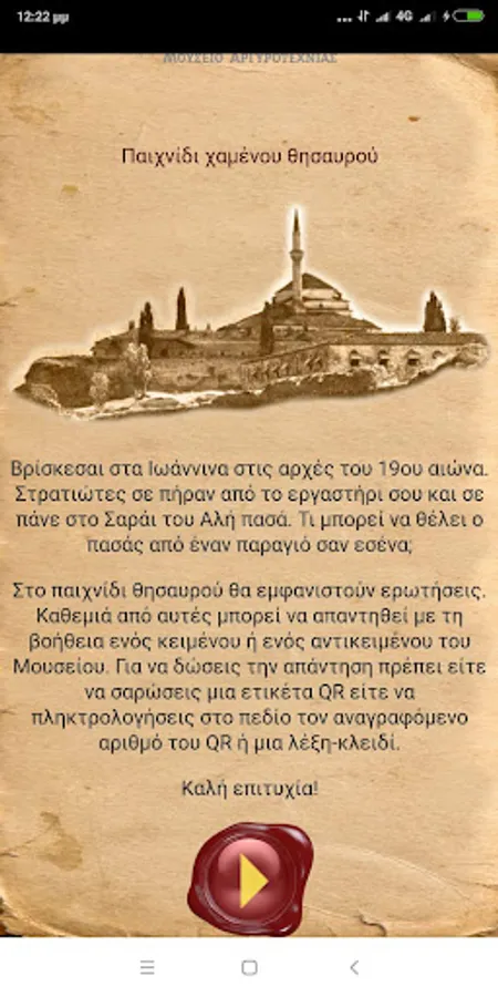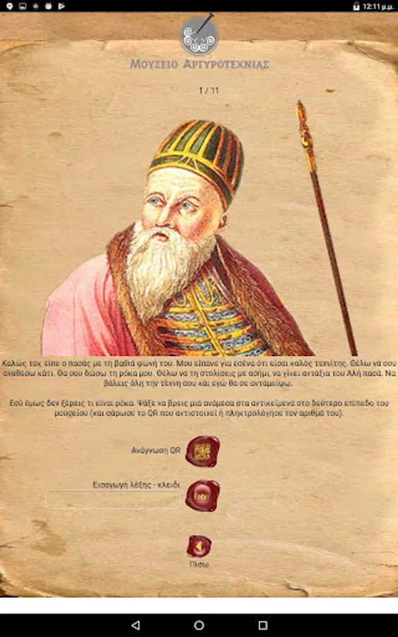 The App contains a multilingual guide that uses QR Tags, a treasure hunt game that visitors of the Museum can play and a virtual tour of the Museum's premises.